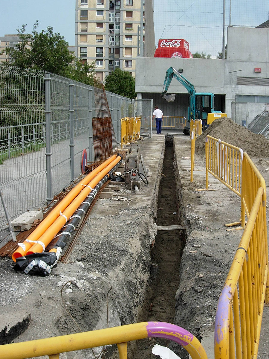 También realizamos todo tipo de canalizaciones (agua, saneamiento, fibra óptica y telefonía, electricidad, tráfico y alumbrado).